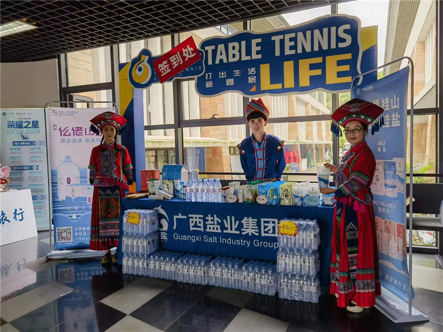 活動(dòng)當(dāng)天,廣西北部灣鹽業(yè)科技有限責(zé)任公司在場(chǎng)館內(nèi)外分別設(shè)立兩個(gè)仫佬山泉展示區(qū),工作人員現(xiàn)場(chǎng)身著具有廣西特色的少數(shù)民族傳統(tǒng)服飾,為現(xiàn)場(chǎng)的領(lǐng)導(dǎo)及嘉賓認(rèn)真介紹鹽業(yè)集團(tuán)旗下的仫佬山泉及其他產(chǎn)品。現(xiàn)場(chǎng)觀眾紛紛駐足停留爭(zhēng)先品嘗仫佬山泉,并給出一致好評(píng),現(xiàn)場(chǎng)學(xué)青會(huì)工作人員更是表示仫佬山泉是選購飲用水的首選產(chǎn)品。