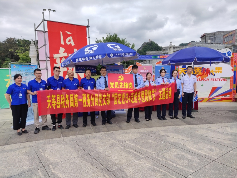 在天等天椒廣場(chǎng)主會(huì)場(chǎng),崇左分公司黨支部與天等縣稅務(wù)局第一稅務(wù)分局黨支部開(kāi)展黨建聯(lián)誼,支部書記曾劍鋒同志帶領(lǐng)黨員干部參加2023年天等縣世界非遺壯族霜降節(jié)系列活動(dòng)開(kāi)幕式,參與現(xiàn)場(chǎng)餐飲烹飪、發(fā)放宣傳資料等宣傳活動(dòng)。在大新下雷鎮(zhèn)圩,黨員先鋒隊(duì)在客戶門前發(fā)放傳單引流,宣傳海藻碘鹽、低鈉鹽、竹鹽、仫佬山泉等產(chǎn)品,通過(guò)開(kāi)展豐富多彩的食鹽產(chǎn)品科普活動(dòng)方式,做好“桂山”“桂鹽”品牌宣傳,共同推介桂山、桂鹽品牌。