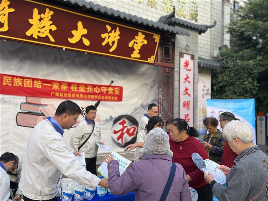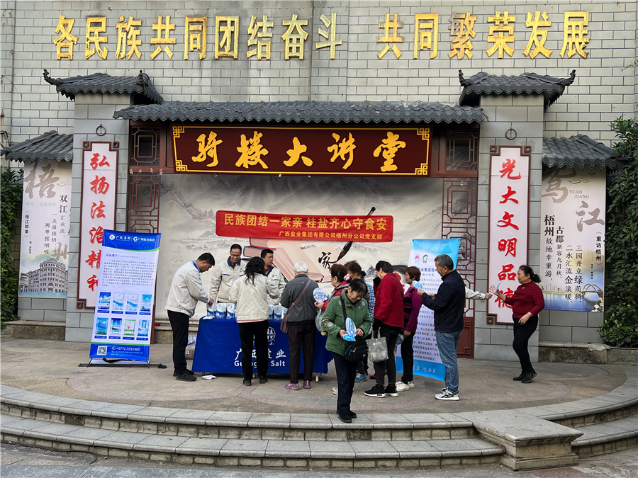 12月8日,梧州分公司緊緊圍繞鑄牢中華民族共同體意識(shí)主線,組織黨員先鋒隊(duì)來到梧州市南中社區(qū)民族宣傳大舞臺(tái),開展“民族團(tuán)結(jié)一家親,‘桂鹽’齊心守食安”食鹽科普宣傳活動(dòng)。