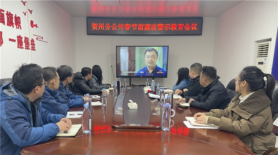 2024年春節(jié)將至,為貫徹落實集團公司關于黨風廉政建設和反腐敗工作要求,持續(xù)加固中央八項規(guī)定,營造風清氣正的節(jié)日氛圍。2月3日,賀州分公司開展春節(jié)前廉政警示教育會議。會議由分公司黨支部書記韋啟航主持,分公司全體在職職工參加會議。