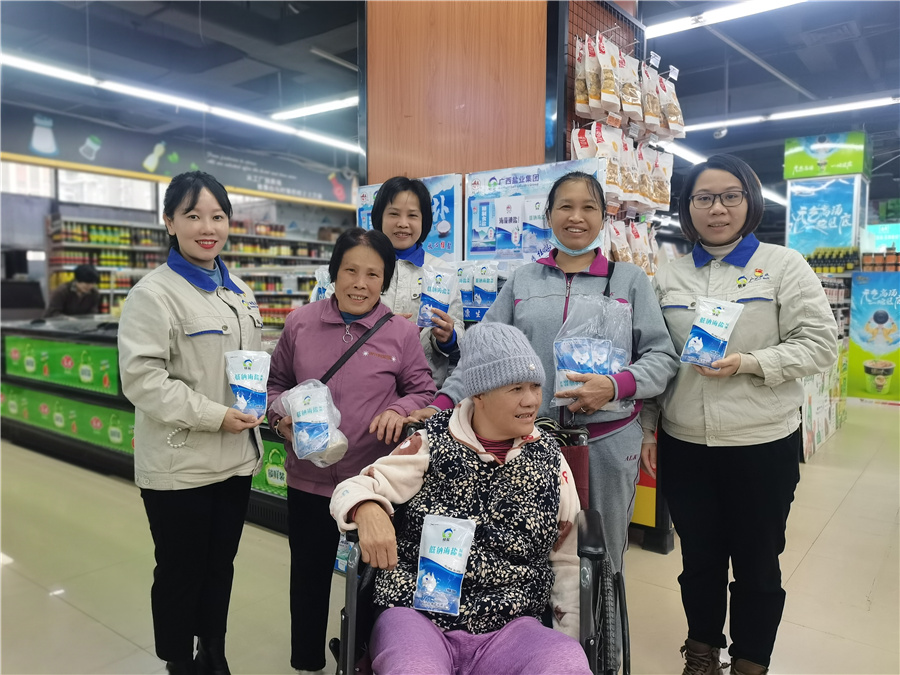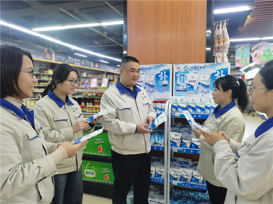 “鹽系”女將們站在貨架前,向廣大消費(fèi)者傳導(dǎo)桂鹽品牌“吃好鹽,少吃鹽”的科學(xué)用鹽理念、科學(xué)選購食鹽品類、普及如何存放食鹽等妙招,積極營造桂鹽品牌的健康、安全氛圍。活動中,她們認(rèn)真理貨、熱情宣導(dǎo)、耐心答疑,還暖心的為顧客挑選鹽品并耐心的打好包,充分展現(xiàn)了桂鹽品牌健康美好的的服務(wù)形象,顧客們樂呵的稱呼女將們?yōu)椤鞍偕}花”,不但現(xiàn)場直接選購桂鹽牌食鹽,還表示今后都會買,因?yàn)榉判摹?/span>