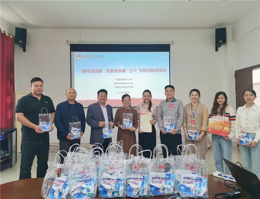 人間最美三月天,春花爛漫綻新顏。因為有了陽光,世界變得溫暖;因為有了鮮花,生活變得浪漫;因為有了女性,生命變得精彩!在第114個“三八”國際婦女節(jié)之際,3月7日、8日,崇左分公司在廣西理工職業(yè)技術學院、崇左分公司本部開展“三八”節(jié)慰問女教師活動,為她們送去零添加健康鹽品,并致以節(jié)日的問候和衷心的祝福。