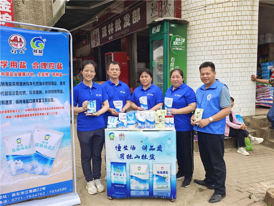 為打響“桂山”、“桂鹽”品牌知名度,廣西鹽業(yè)集團崇左分公司組織地推小組到左州鎮(zhèn)開展地推活動,早上5點半,地推小組早早就前往左州文化廣場做好宣傳準備,搶占人流量大,受眾面廣的地推位置。在吆喝聲、發(fā)放宣傳單頁、展架展示中,一場“咸”味十足的現(xiàn)場宣傳,引來很多群眾駐足了解。“我家就是吃這種鹽。”拿到宣傳單頁后的民眾指著其上的“桂山”海藻鹽說。近兩年,崇左分公司積極推進“深入農(nóng)村市場,開展品牌宣傳,提升品牌效應”的工作目標,進一步加大對農(nóng)村的宣傳和推廣力度,在鄉(xiāng)村市場擴大多品種鹽陳列版面,推廣零添加、低鈉鹽品也將成為崇左分公司在農(nóng)村市場今后開展鹽品宣傳的重點。