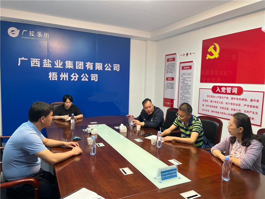 3月27日上午,自治區(qū)市場(chǎng)監(jiān)管局特殊食品和食鹽監(jiān)管處副處長(zhǎng)、二級(jí)調(diào)研員程敏平率隊(duì)到廣西鹽業(yè)集團(tuán)梧州分公司調(diào)研。