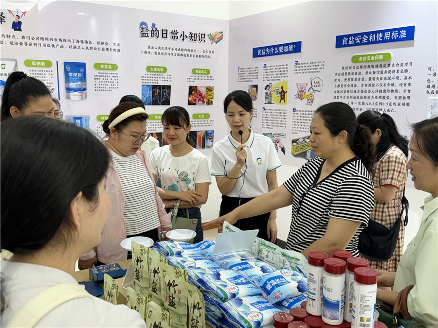 在南寧市市場監(jiān)督管理局四級調(diào)研員尹學(xué)兵的帶領(lǐng)下,參觀人員來到南寧分公司食鹽科普驛站。參觀中,大家認(rèn)真聆聽講解員系統(tǒng)地講解食鹽科普專業(yè)知識,并結(jié)合日常工作中消費者關(guān)注的熱點問題進(jìn)行現(xiàn)場互動提問?!艾F(xiàn)在一些網(wǎng)絡(luò)上提到的食鹽添加劑亞鐵氰化鉀有毒,是真的么?”“喜馬拉雅玫瑰紅鹽有特殊功效嗎?營養(yǎng)價值比普通食用鹽更高嗎?”“為什么要食用低鈉鹽?食用低鈉鹽有什么好處?”等等。針對大家提出的問題,南寧分公司的工作人員耐心一一解答,解決大家的疑惑,參觀人員紛紛點贊。