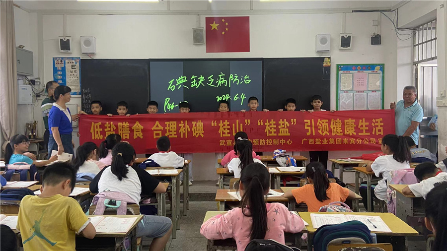 6月4日上午,為持續(xù)宣傳“品質(zhì)桂山,放心桂鹽”的服務(wù)理念,來賓分公司走進(jìn)武宣縣桐嶺鎮(zhèn)中心學(xué)校,開展了“低鹽膳食,合理補碘,‘桂山’‘桂鹽’引領(lǐng)健康生活”進(jìn)校園活動。本次圍繞安全用鹽知識以及如何科學(xué)減鹽,為學(xué)生開展健康講座。