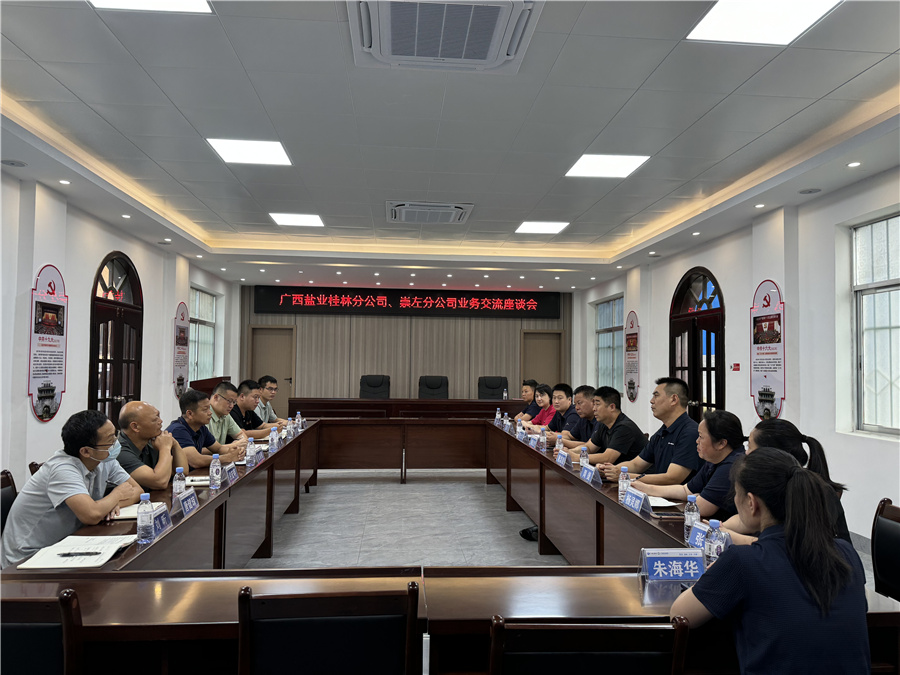 參觀后,崇左分公司與桂林分公司就上半年工作情況進(jìn)行了座談交流,雙方對黨建工作、鹽品經(jīng)營、關(guān)鍵業(yè)務(wù)發(fā)展指標(biāo)、非鹽業(yè)務(wù)等互相介紹經(jīng)驗、進(jìn)行了深度交流,并針對當(dāng)前存在難點問題以及下半年重點工作進(jìn)行了探討。