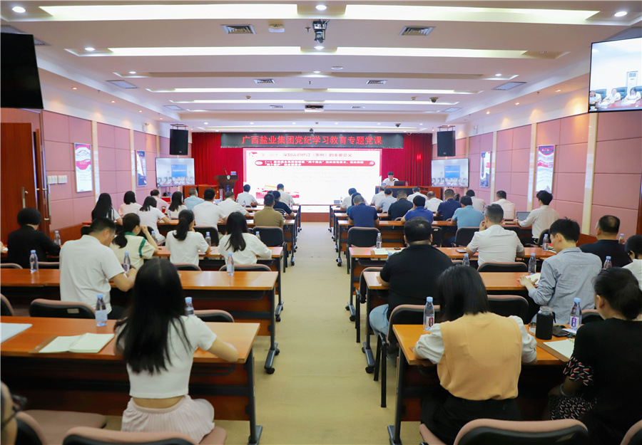黨課以現(xiàn)場加視頻的形式召開,總部黨支部、中鹽廣西黨支部和北部灣公司黨支部全體黨員同志現(xiàn)場參加,賀州分公司黨支部全體黨員同志視頻參加。