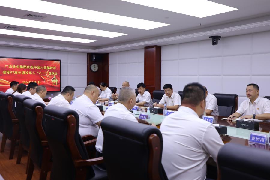 8月1日上午,廣西鹽業(yè)集團召開慶祝中國人民解放軍建軍97周年座談會,集團黨委書記、董事長李奕添出席會議并講話,集團黨委副書記、職工董事、工會主席韋平主持會議,21名集團駐邕企業(yè)在職退役軍人代表參加座談會。