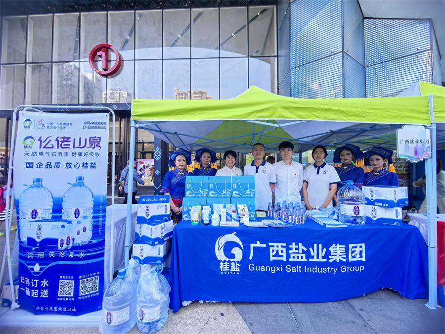 廣西鹽業(yè)集團(tuán)展臺(tái)主要以鹽品、鹽日化及飲用水等產(chǎn)品的相關(guān)安全知識(shí)宣傳科普為主,展臺(tái)以引人注目的產(chǎn)品陳列、絢麗多彩的海報(bào)畫面營(yíng)造出濃厚的宣傳氛圍,吸引了眾多市民駐足咨詢。在活動(dòng)現(xiàn)場(chǎng),集團(tuán)工作人員身著廣西鹽業(yè)工作服,以寓教于樂(lè)的方式與市民開展交流,向市民傳遞“少吃鹽、吃好鹽”的健康飲食理念,同時(shí)引導(dǎo)市民提高食鹽安全意識(shí),增強(qiáng)自我防范能力。工作人員還邀請(qǐng)市民現(xiàn)場(chǎng)品鑒了集團(tuán)旗下“仫佬山泉”飲用水并推薦“桂鹽生活家”及訂水平臺(tái)微信小程序。