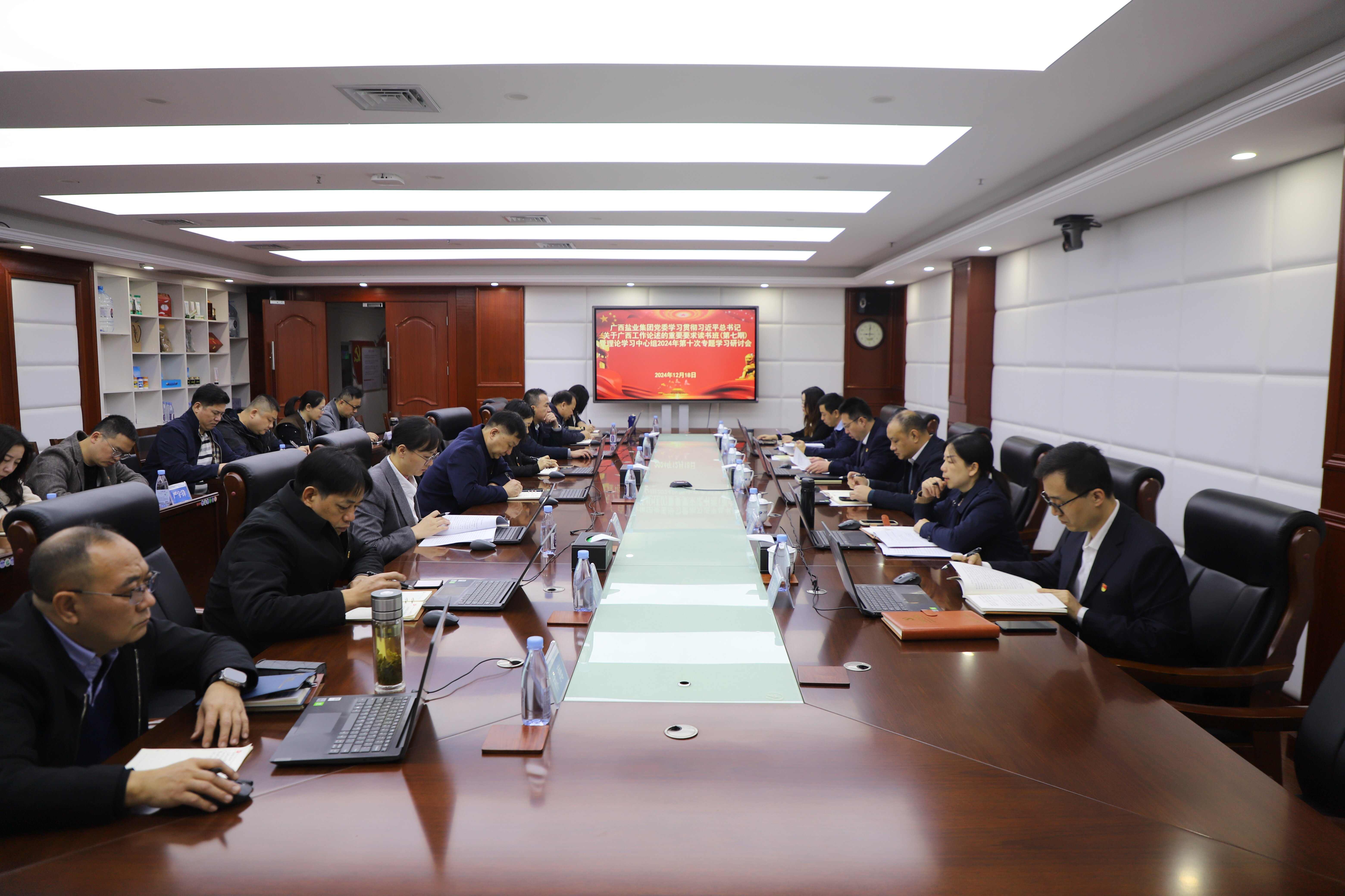2024年12月18日,廣西鹽業(yè)集團黨委召開學習貫徹習近平總書記關于廣西工作論述的重要要求讀書班(第七期)暨理論學習中心組2024年第十次專題學習研討會,原文學習《習近平關于廣西工作論述摘編》,廣西鹽業(yè)集團黨委書記、董事長邱潮涌主持會議并講話。