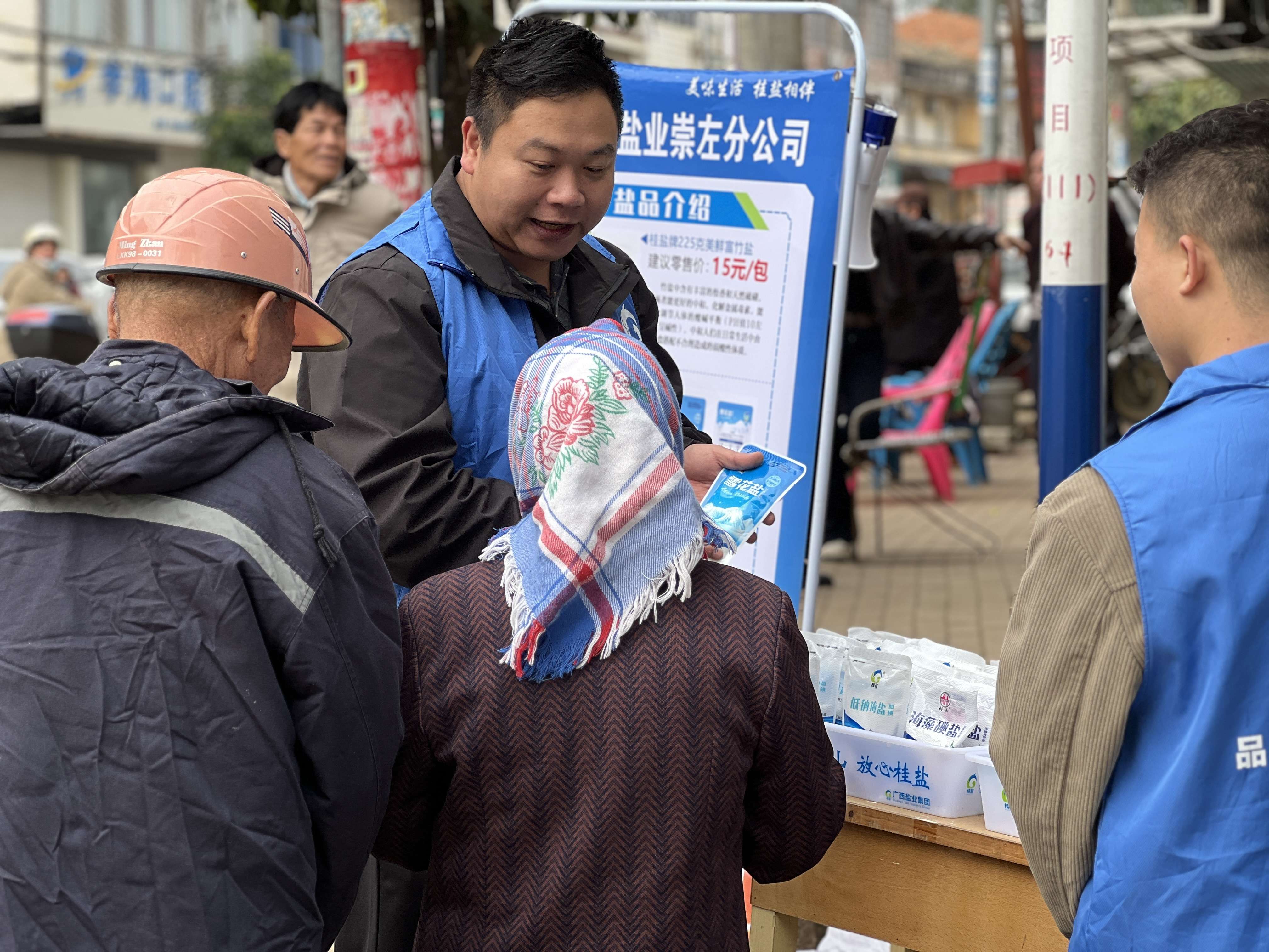 搶花炮決賽后,廣西鹽業(yè)集團崇左分公司巧妙地在巡游的必經之路上擺攤設點開展地推活動,借著熱鬧的人流,讓四方聞訊而來的民眾在沉浸式體驗民族傳統(tǒng)節(jié)日魅力的同時,還能深入了解健康用鹽知識,進一步了解“桂鹽”“桂山”品牌。