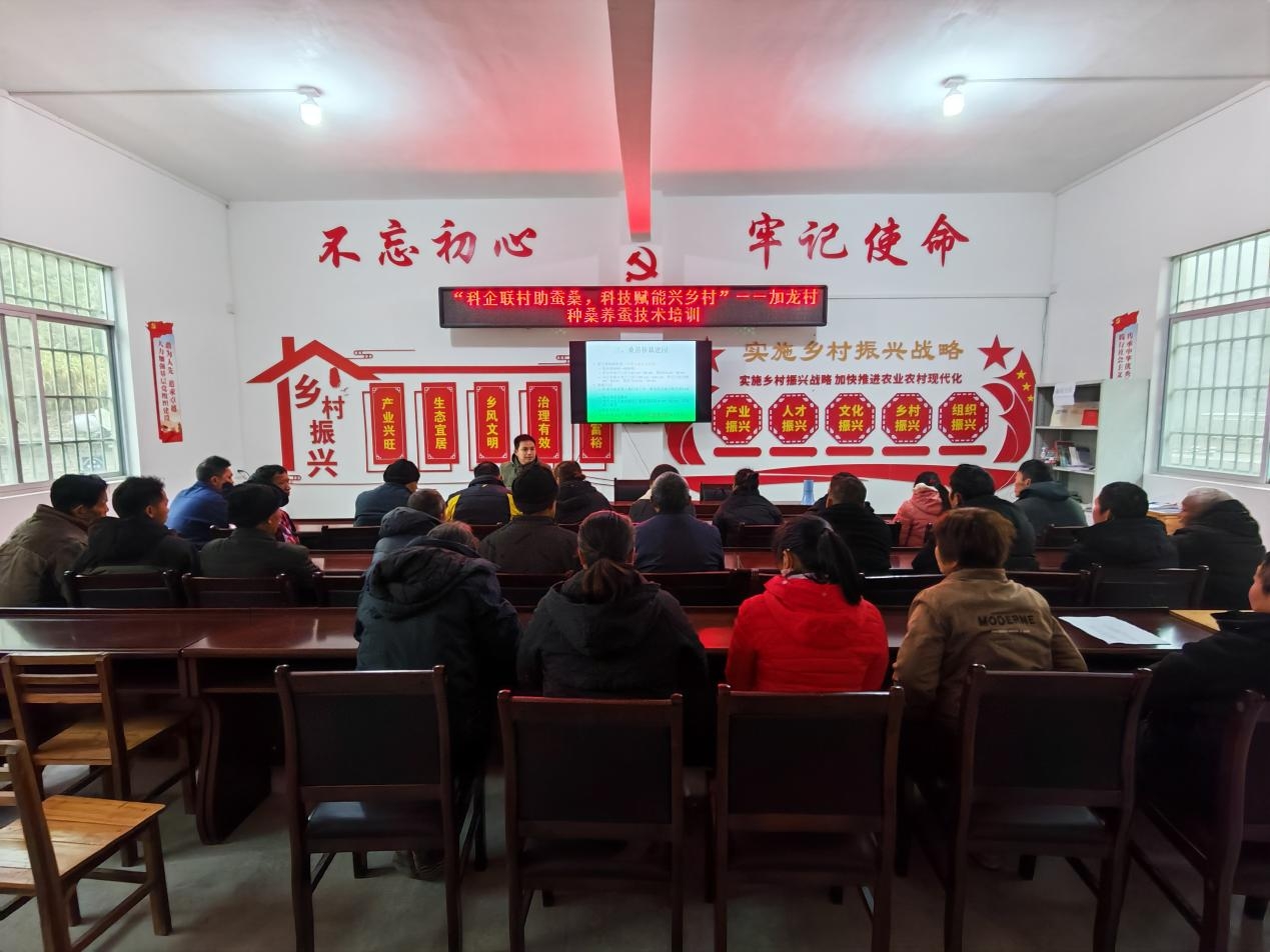 1月22日,加龍村舉辦了種桑養(yǎng)蠶技術(shù)培訓(xùn)會。來自河池市農(nóng)業(yè)科學(xué)研究所的專家團(tuán)隊走進(jìn)村里,圍繞桑樹種植、養(yǎng)蠶管理等實(shí)際問題,為村民進(jìn)行現(xiàn)場講解和指導(dǎo)。