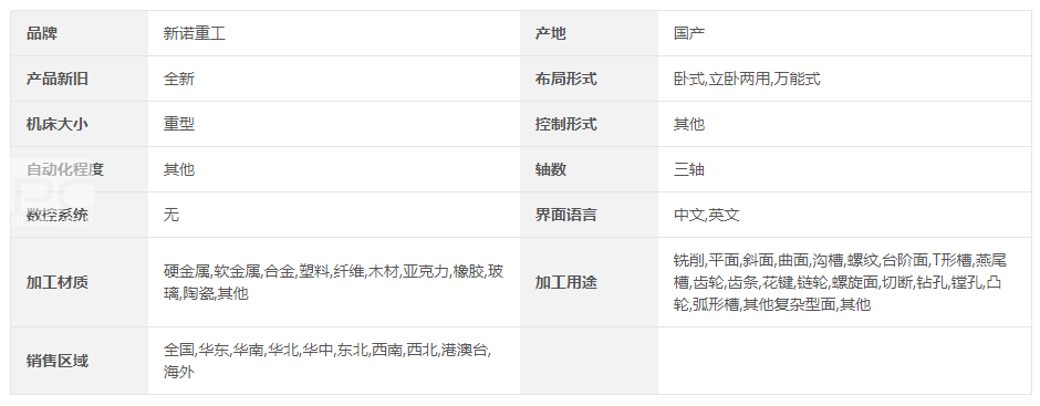 新諾精工產(chǎn)品系列:立式升降臺(tái)銑床|臥式升降臺(tái)銑床|萬(wàn)能升降臺(tái)銑床|萬(wàn)能回轉(zhuǎn)頭銑床|數(shù)控銑床|端面銑床|立式加工中心|臥式加工中心|龍門加工中心|