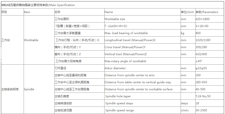 X6142******升降臺(tái)銑床是一種用途廣泛的通用機(jī)床,適宜于棒形、圓片、成形和端面銑刀,進(jìn)行平面、溝槽和邊緣的加工。在本機(jī)床上安裝分度頭等附件后,還能銑切齒輪、鉸刀、螺旋槽、凸輪和鼓輪等工件,廣泛應(yīng)用于機(jī)械加工各行業(yè)。