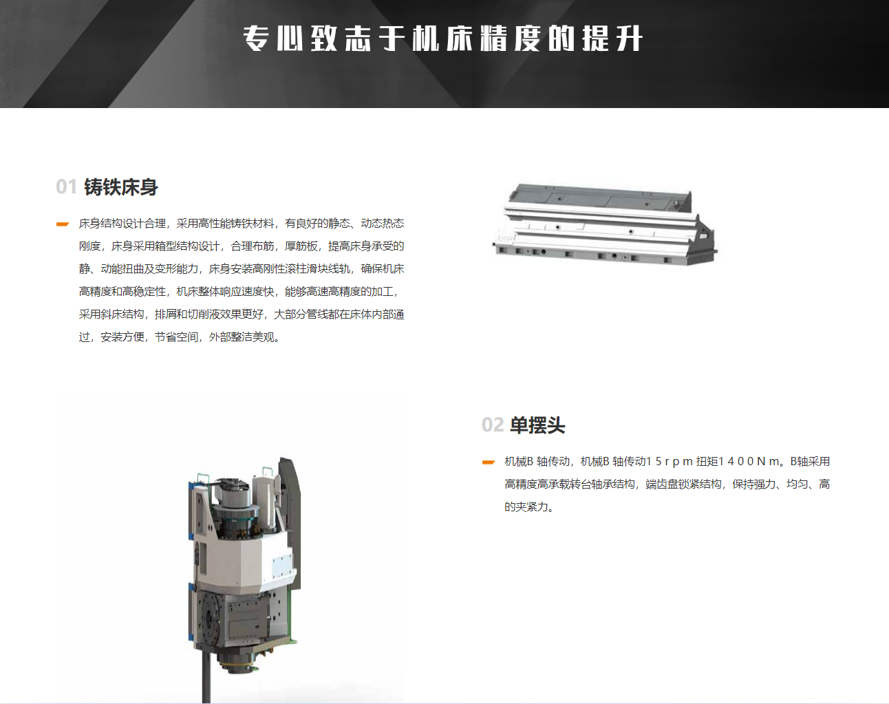 刀具主軸采用超緊湊型銑削主軸,總長度470mm;B軸擺動角度為-110°~+90°,共200°;