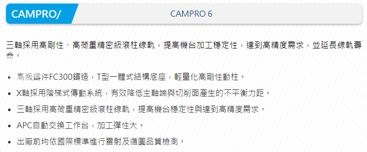 產(chǎn)品型號:|CAMPRO6臥式加工中心|CAMPRO6臥式加工中心|CAMPRO6臥式加工中心|CAMPRO6臥式加工中心|CAMPRO6臥式加工中心|