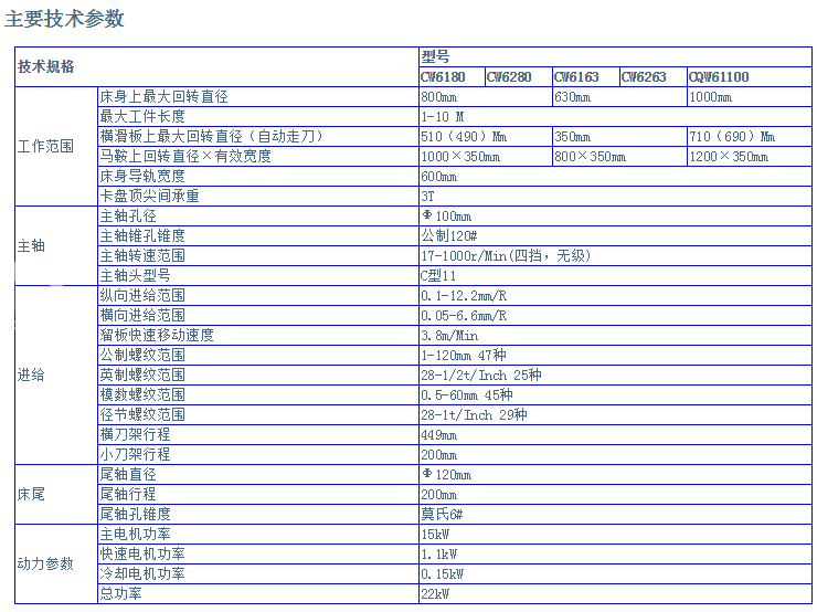 此系列普通車床導(dǎo)軌寬度600mm,型號(hào)有CW6163普通車床、CW6263馬鞍車床、CW6180普通車床、CW6280馬鞍車床、CW61100普通車床、CW62100馬鞍車床